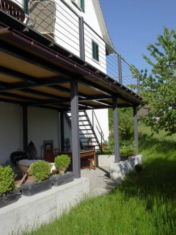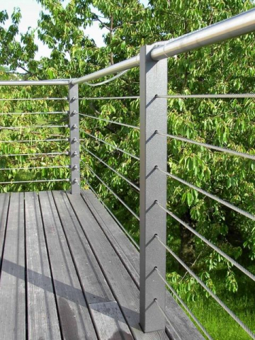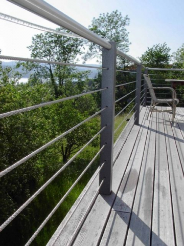 Balkongeländer mit Inoxdrahtseilen und Handlauf