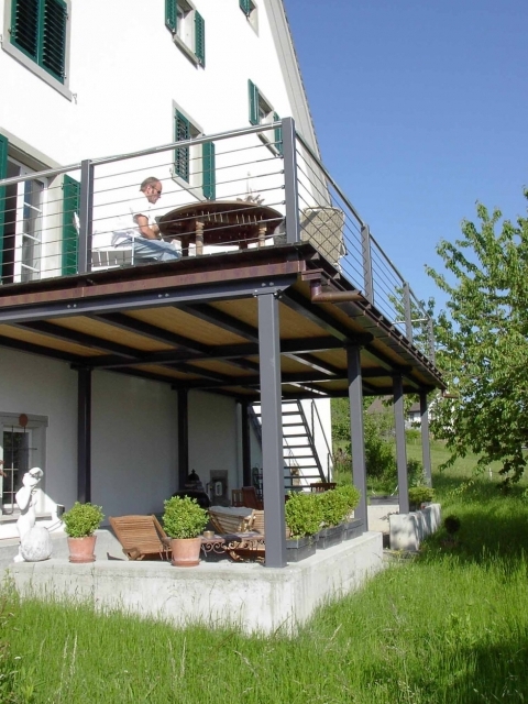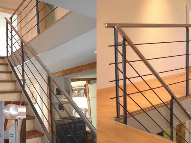 Balkongeländer mit Inoxdrahtseilen und Handlauf