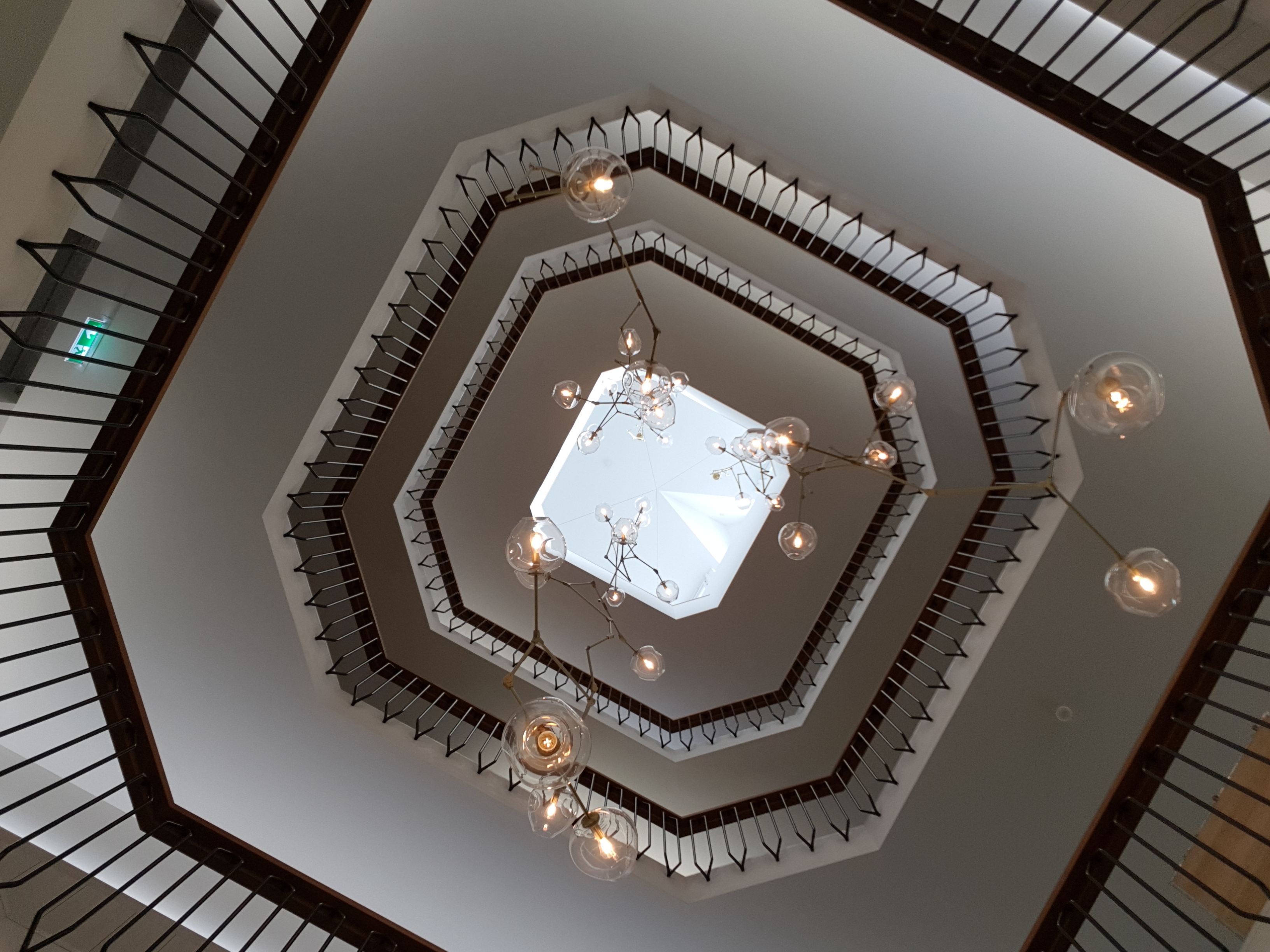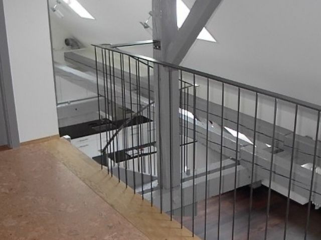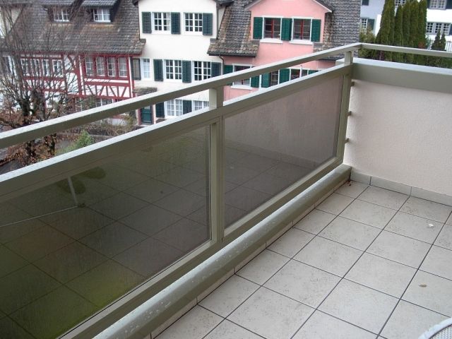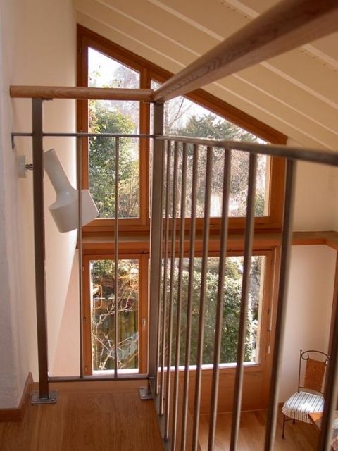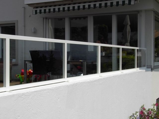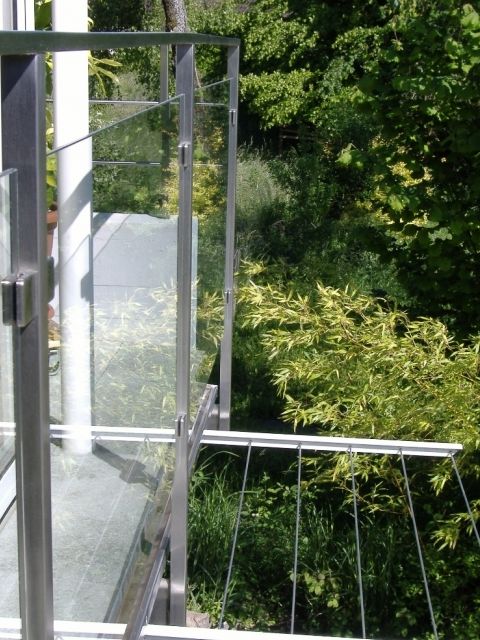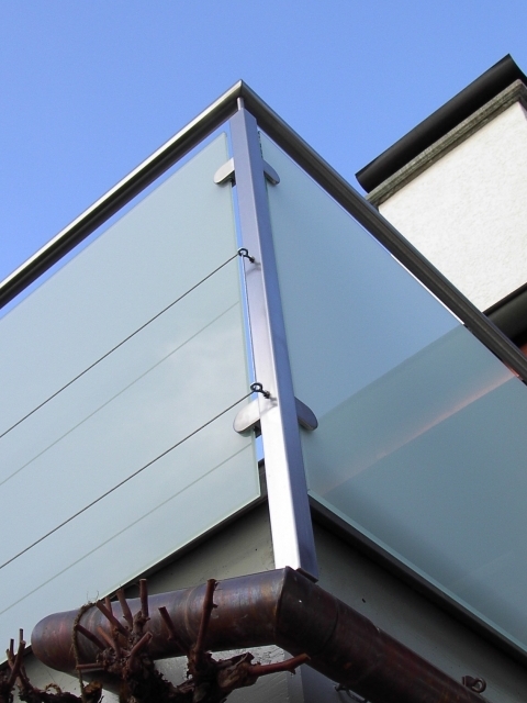 Geländer mit Inoxhandlauf und Mattglasfüllung